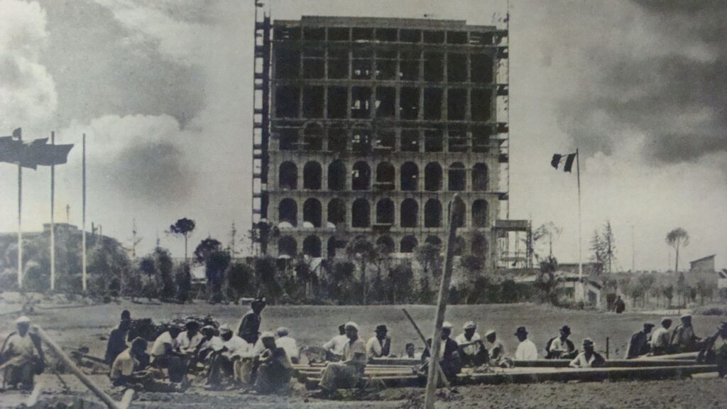 Si hacemos caso a Le Corbusier, veremos que la pureza de las formas funciona con una fuerza indiscutible. Porque el edificio de Guerrini, La Padula y Romano es tan monumental, como atemporal. Justo como tenía que ser para cumplir su cometido original: ser la pieza central de la Esposizione Universale de Roma de 1942. Una función frustrada por la Segunda Guerra Mundial que, no obstante, dio lugar a todo un distrito: el “EUR” o “E.42”, hoy centro financiero de la capital italiana.