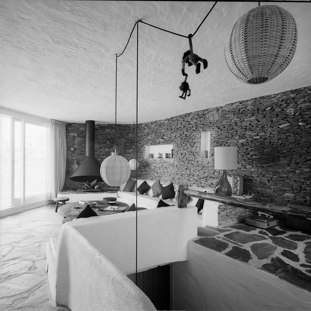 Barba Corsini proyectó en 1957 esta casa cuyos volúmenes y materiales generan una sensación casi escultórica. Un muro de piedra de Cadaqués cierra la vivienda y la dota de privacidad, excepto en la fachada principal, que se abre a dos calas de la Costa Brava con ventanas de suelo a techo.