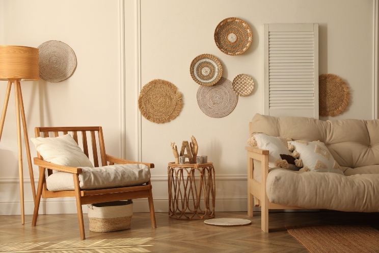 Platos de madera, mimbre o ratán: de materiales cálidos y naturales, elaborados a mano con detalles intrincados o un acabado más raw. Introducen un toque rústico o étnico en cualquier ambiente.