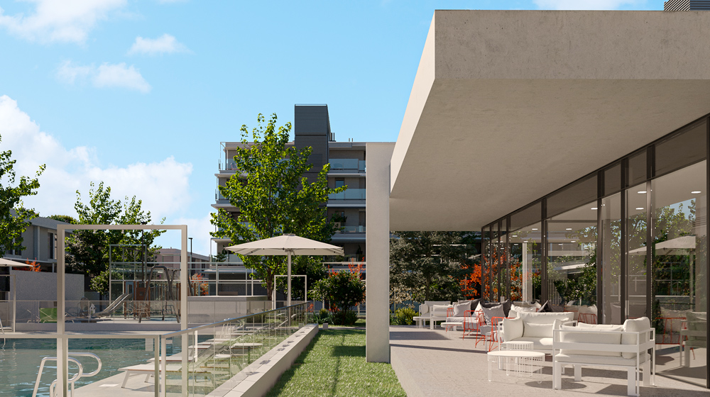 Así, gracias a una decoración sencilla y a una cuidada selección de piezas de mobiliario, los interiores de Nolita cobran vida y respiran del espíritu del proyecto. Aspectos como la sostenibilidad, reflejada en el primer certificado Breeam de la ciudad, o sus completas zonas comunes, con piscina, gimnasio y pista de pádel, son rasgos de identidad del proyecto. Elementos diferenciadores que materializan un enfoque centrado en la calidad de vida.