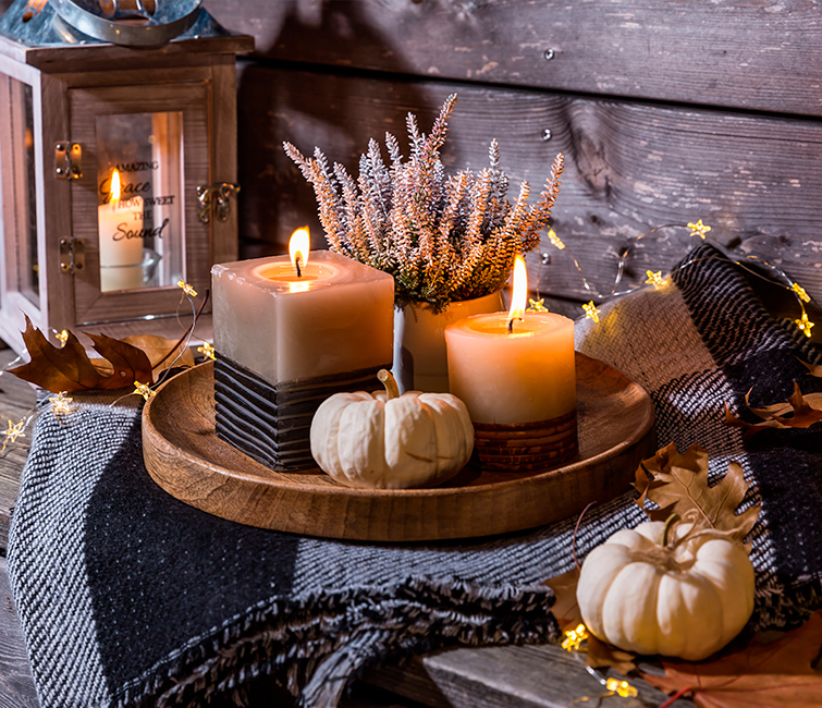 Otro elemento que aporta luz y que, al mismo tiempo, puede aromatizar el espacio son las velas. Colócalas en portavelas decorativos o en farolillos de gran tamaño. ¿No sabes por qué fragancias decantarte? Si escoges velas con esencias, las fragancias tienden a ser más dulces y especiadas en esta época: vainilla, canela, manzana, ámbar o madera de cedro.
