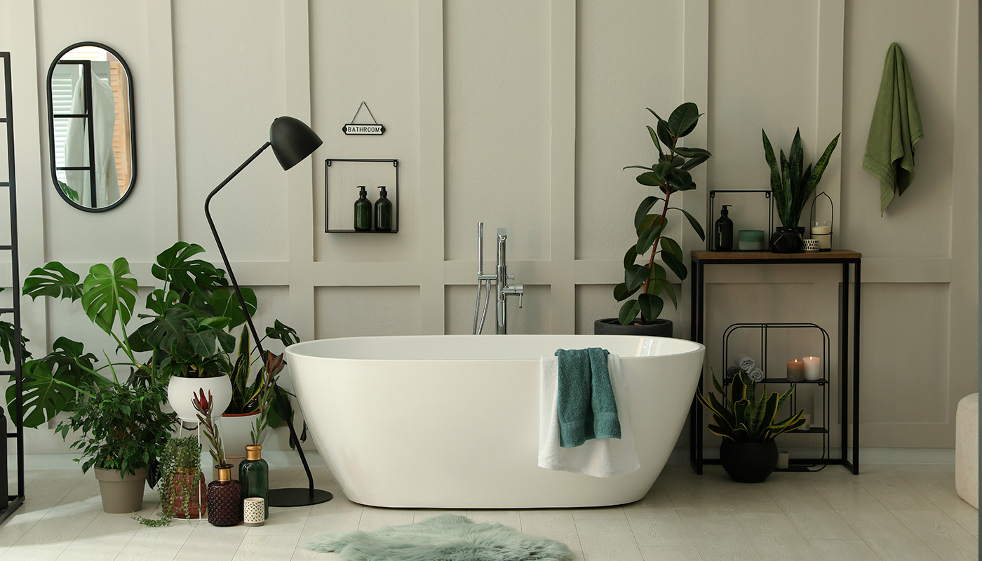 Opta por especies que prosperen en ambientes húmedos como el helecho de Boston, el espatifilo, el bambú o el tronco de Brasil. Colócalas en macetas decorativas que armonicen con el estilo del baño. Estas plantas, además de estéticas, son también fáciles de cuidar.