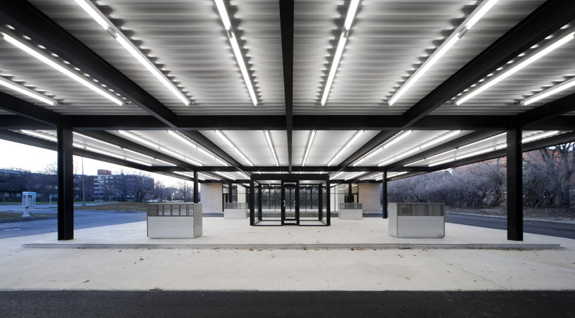 Esta gasolinera es Mies en estado puro. Grandes vigas de acero unen dos cubos de vidrio entre los cuales se sitúan los surtidores. Un planteamiento tan sencillo como genial y una estética inconfundible. Desde su puesta en funcionamiento en 1966, esta gasolinera con apellido ilustre ha cumplido su cometido hasta su reciente remodelación, a cargo de FABG, para convertirla en un centro comunitario. Una reforma no exenta de polémica, pues se ha cambiado, no solo el uso, sino la disposición del edificio para aprovechar el gran espacio central, antes solo protegido por la cubierta.