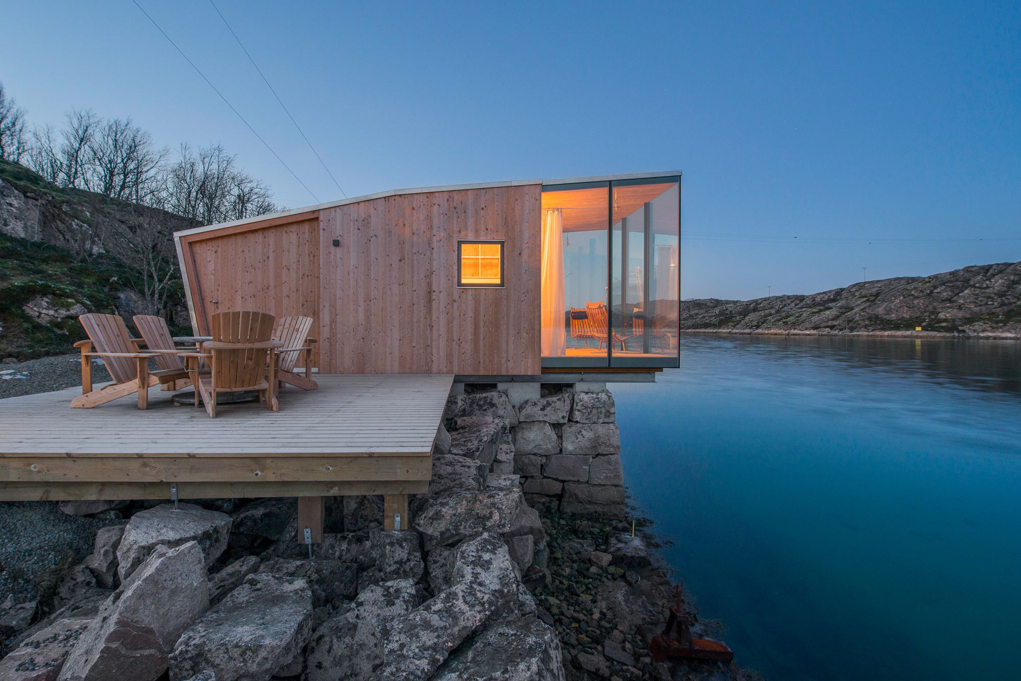 En teoría, estás cabañas, obra de Snorre Stinessen, deberían alojar a los exploradores que piensan adentrarse en el Círculo Polar Ártico. Lo difícil será que quieran abandonarlas. Situadas en una isla noruega de 22 hectáreas, sus grandes cristaleras se orientan al mar, sobre el que se elevan en voladizo. En su diseño se tuvo en cuenta la necesidad de prefabricarlas para poder instalarlas sobre el antiguo muelle que las sostiene. De esta manera, se minimiza el impacto en el terreno, un terreno en el que se integrarán a la perfección en cuanto el revestimiento exterior adquiera las tonalidades grises del paisaje, algo para lo que ha sido tratado previamente. Ya en el interior, solo apetece sentarse y contemplar la superficie del agua, cambiando de color hasta reflejar la aurora boreal.