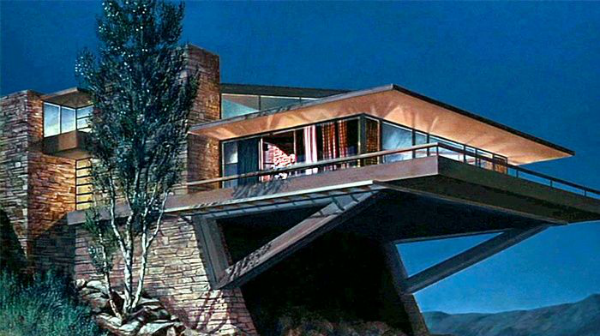 A mediados del siglo XX, Frank Lloyd Right era tendencia absoluta en el mundo de la arquitectura y fuera de él. Cada uno de sus edificios era motivo de estudio y reflexión, pero también un espectáculo digno de ser admirado. Por ello, los productores de la Metro Goldwyn Mayer intentaron que diseñara la casa del villano de North by Northwest (Con la muerte en los talones). Sin embargo, se encontraron con la misma cruda realidad que los productores de El Manantial; el trabajo de Mr. Right era impagable. Literalmente. Ante esta situación, confiaron su creación a un delineante que tenían en plantilla, el arquitecto Robert F. Boyle, quien se encargó de dar vida a una casa que parece recién salida del lápiz del genio de Wisconsin. Una casa que nunca existió y que estaba construida en un sitio en el que jamás podría haber estado, el parque natural del Monte Rushmore. Y, no obstante, es una de las mejores muestras de la arquitectura moderna en la historia del cine.