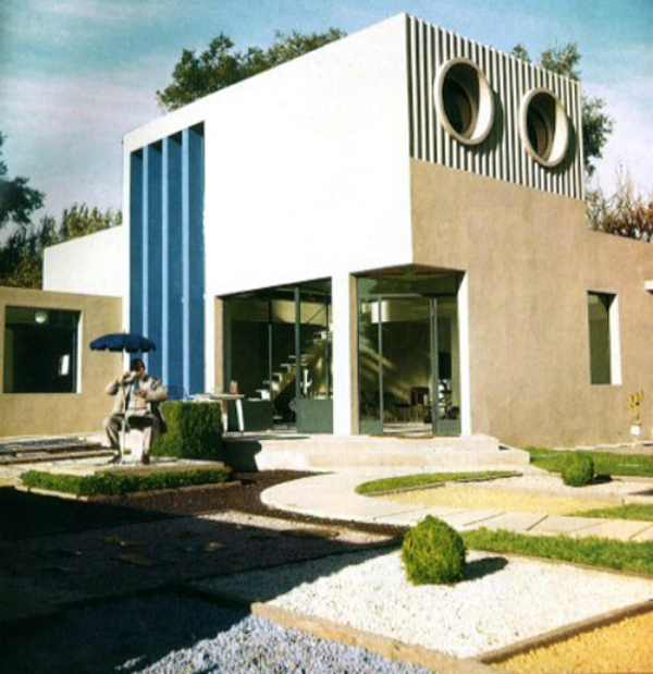 El gusto de Jacques Tati por la arquitectura está fuera de toda duda. En 1958, cuando rodó Mon oncle, las bondades estéticas de las case study houses ya estaban más que asentadas en la arquitectura residencial. Una realidad que no impidió a Tati una profunda labor de documentación para crear la Villa Arpel, ejemplo de vivienda unifamiliar ultramoderna separada del mundo real por un muro en el que solo se abre una puerta para entrar y salir en coche. Este tono de crítica social, en el que se contrapone la arquitectura futurista con la arquitectura caótica del París más urbano fue malinterpretada por muchos arquitectos de su época. Desafortunadamente, no supieron apreciar la dicotomía entre la vivienda aislada de su entorno y la vivienda tradicional, inmersa en su contexto y facilitadora de las relaciones humanas. Sea como fuere, la casa futurista de Tati es una delicia estética, con cada detalle cuidado al milímetro, desde el absurdo jardín, hasta el fantástico mobiliario diseñado por el propio director y por el guionista Jaques Lagrange. Todo un placer para la vista que invita a la reflexión y que fue premiado con el Oscar a la mejor película extranjera en 1959.