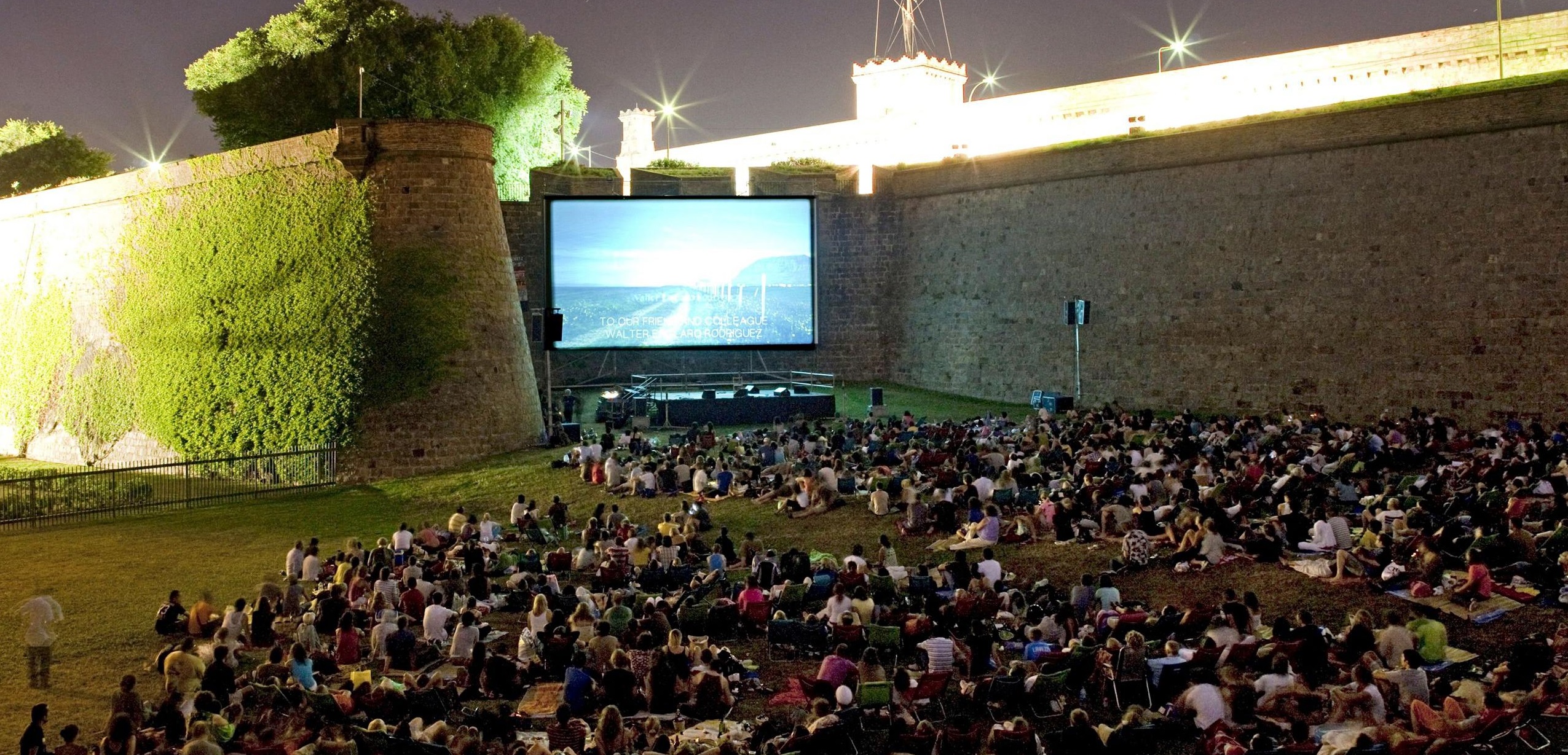 En un recoveco de las murallas del castillo de Montjuïc se instala cada verano la sala de cine más recomendable de Barcelona. Seguramente porque no es ninguna sala, sino una pradera de césped sobre la que podemos tumbarnos con la ciudad a nuestros pies. Además, antes de la película, podremos disfrutar de música en directo y un cortometraje. Un regalo para cinéfilos, para amantes del cine como acto social y de las películas en su idioma original.