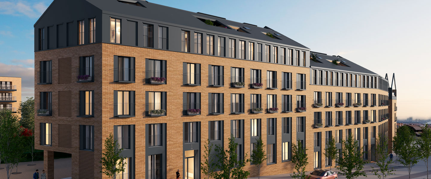 Viviendas en un residencial innovador y atractivo de líneas sencillas, volúmenes sólidos y grandes ventanales