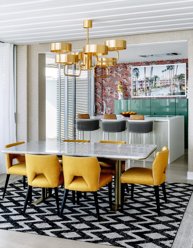 Alfombra estampada en el interiorismo de Jean Porsche para The Edge by Kronos Homes.