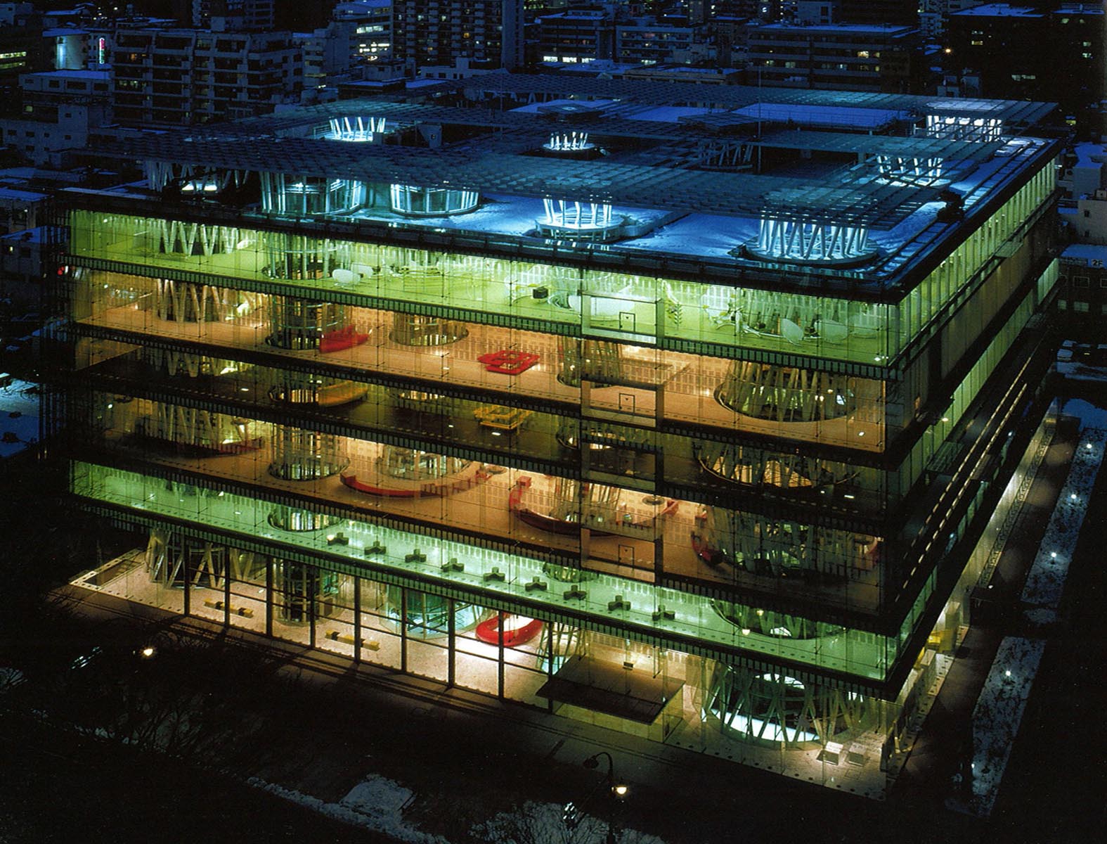 Toyo Ito (Pritzker 2013) siempre ha estado fascinado por la electrónica y la tecnología. Quizás por ello su estudio se llamaba Urbot (Urban Robot), antes de convertirse en algo tan corriente como Toyo Ito & Associates. Serían exigencias del guión, porque este japonés nacido en Corea del Sur, es cualquier cosa menos predecible. Sus estudios teóricos lo dejan bien claro en textos como La Imagen de la Arquitectura en la Era Microelectrónica, o El Jardín de Microchips. Pero su visión de una doble arquitectura, a la vez física y virtual, no se queda en el papel: podemos comprobarlo en la Mediateca de Sendai.