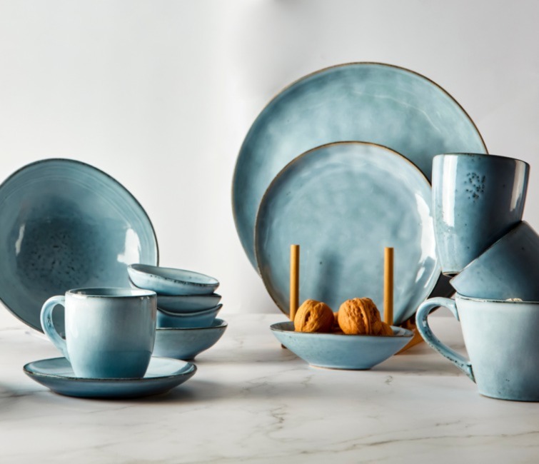 La vajilla de loza está compuesta por cerámica esmaltada y cocida, un material poroso y grueso que se rompe con facilidad, pero que se puede lavar en lavavajillas. La loza se cuece a baja temperatura lo que permite la realización de pequeñas obras de arte aplicadas bajo la capa vidriada para decorar cada pieza.