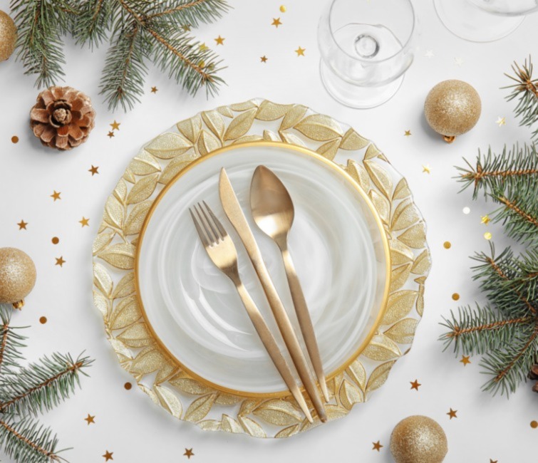 Una mesa navideña no solo se compone de una vajilla. No podemos olvidarnos de la cubertería, la mantelería y la cristalería para darle el aire perfecto a estas fiestas. Nuestra vajilla cobrará importancia con el resto de los complementos que conformarán el centro de las reuniones durante estas fiestas.
