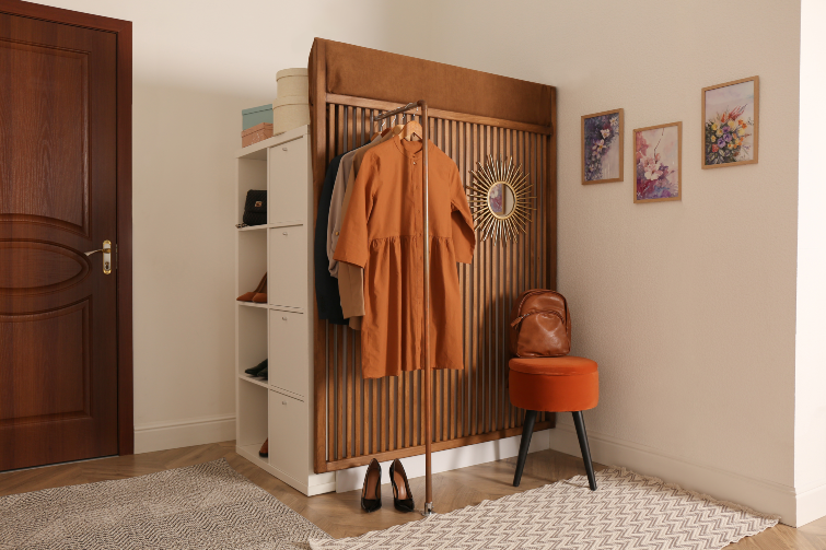 Esta opción, más moderna y atrevida, requiere de un complemento extra para poder ser utilizado: las perchas. Este detalle marcará la diferencia: usa perchas robustas, preferentemente de madera, sobre todo si van a soportar el peso de abrigos pesados, y con un diseño uniforme que cree un conjunto lleno de estilo.