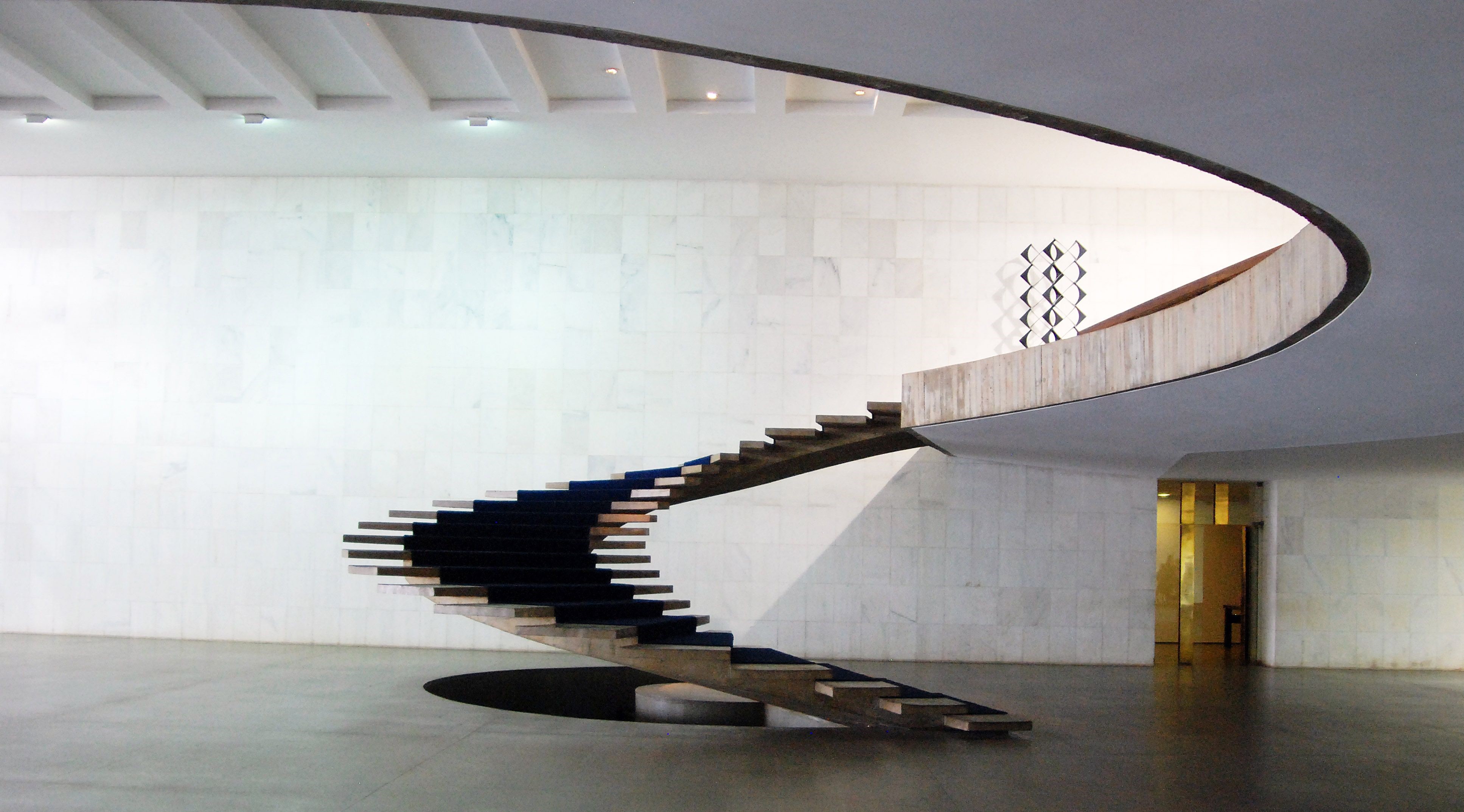 No nos cansamos de volver una y otra vez al gran Pritzker brasileño. Y tampoco nos cansamos de revisitar Brasilia, donde se encuentra el Palacio Itamaraty, también conocido como Palacio de los arcos, por su característica estética exterior. Sin embargo, en esta ocasión, cruzamos sus puertas para contemplar una de las escaleras más bellas de la arquitectura moderna. La curva característica de Niemeyer y una simplicidad absoluta marcan este diseño que parece flotar de una planta a otra.