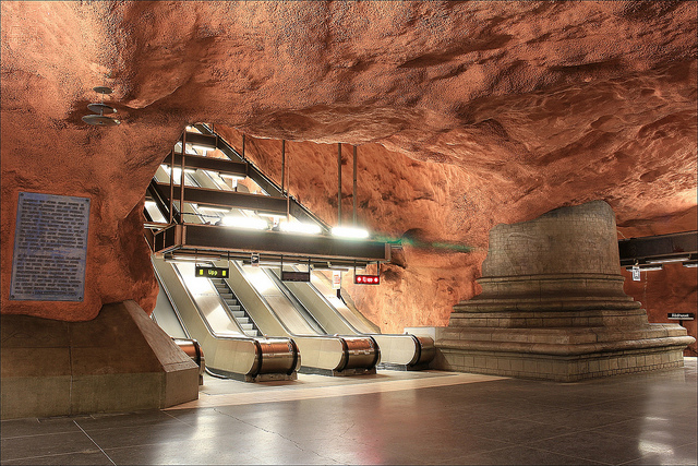 La espectacularidad de esta estación, diseñada por el polifacético Sigvard Olsson, radica en la aparente ausencia de arquitectura, o ingeniería. Su estética marcadamente orgánica semeja el interior de una caverna, una técnica que comparte con otras estaciones del suburbano sueco construidas en los años 70. Y, aunque Rådhuset es una de las más espectaculares, también comparte con el resto de la red subterránea su condición de museo público, ya que durante los últimos 50 años más de un centenar de artistas han decorado 90 de las 100 estaciones del metro de Estocolmo.
