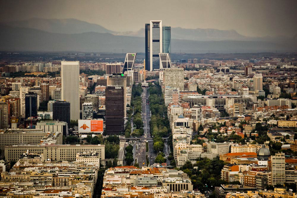 El corazón financiero de Madrid comenzó a latir en AZCA en 1954, cuando el arquitecto Antonio Perpiñá ganó el concurso para crear una inmensa manzana de oficinas en lo que entonces eran las afueras de la capital. Su proyecto contemplaba la construcción de un jardín botánico y un gran teatro de la ópera que nunca llegaron a ver la luz. Aún así, con el tiempo, AZCA se consolidó como el centro neurálgico de las grandes empresas españolas y, posteriormente, nuevos rascacielos modificaron el skyline al norte de la Castellana, primero en la Plaza de Castilla, con las Torres KIO, y posteriormente con el complejo de las Cuatro Torres, un hito arquitectónico que ha sentado las bases del proyecto Madrid Nuevo Norte. Este eje financiero que cruza la capital a lo largo del tramo norte del Paseo de la Castellana es una de las perspectivas más representativas del Madrid moderno.
