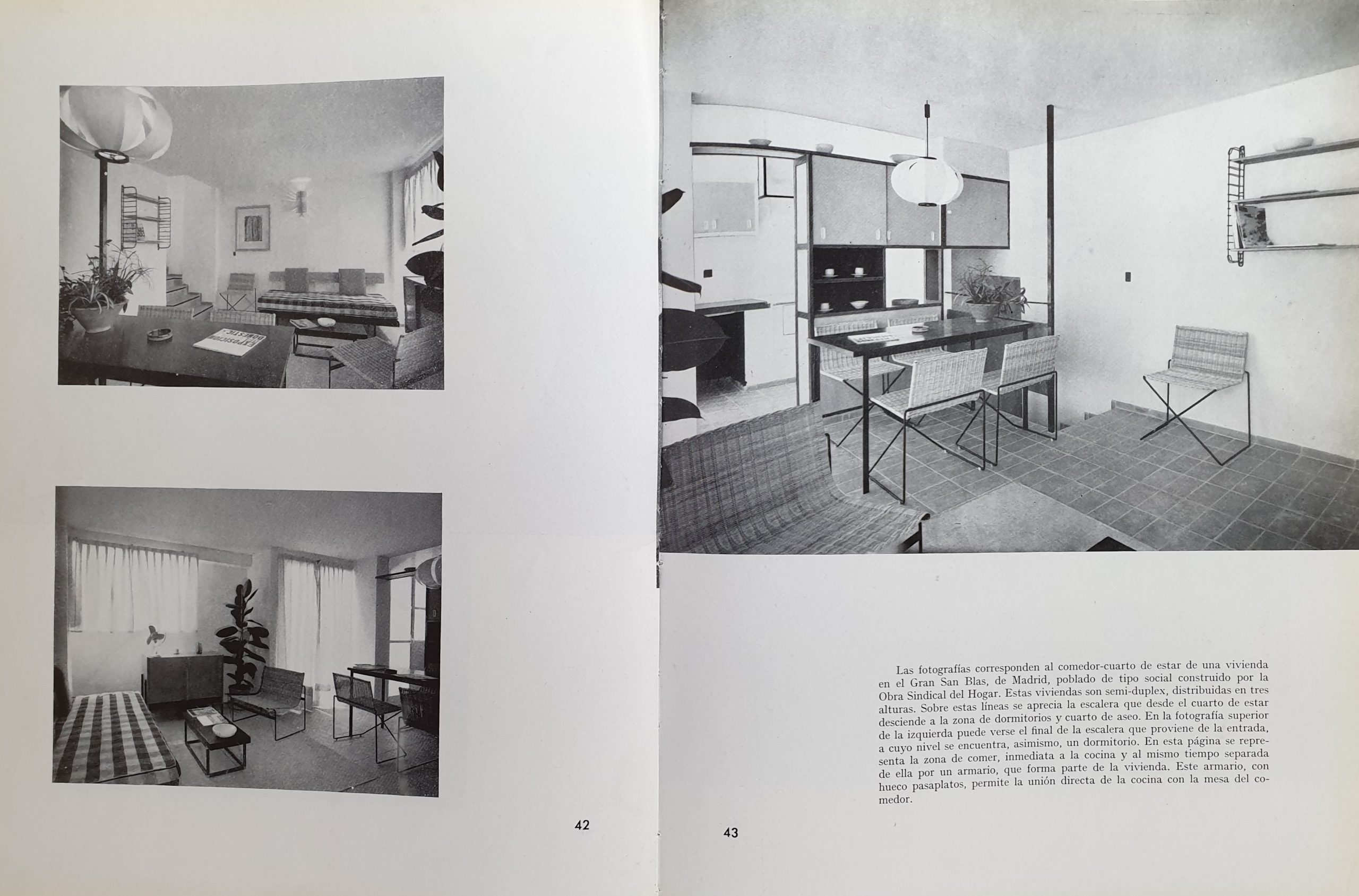 Pero la voluntad de modernizar el diseño nacional, no se quedaba en los grandes eventos internacionales. Ya en 1960, H Muebles convocó su primer concurso de diseño, en el que destacaron Moneo, Miguel Milá, Jesús de la Sota, o Amparo Cores. Figuras clave del arte, el diseño y la arquitectura, cuyas propuestas fueron fundamentales para el éxito de la EXCO, otro concurso y exposición promovido por Huarte; en este caso, para el denominado “mueble económico” bajo el auspicio del Ministerio de la Vivienda. Como podemos ver en las imágenes de unos bloques de vivienda social en Madrid, algunas de sus propuestas siguen siendo de una modernidad completamente atemporal.