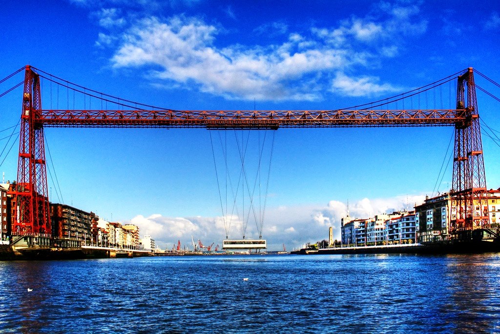 El puente de Vizcaya, o sencillamente puente colgante, es mucho más que un medio para cruzar de Guecho a Portugalete sobre la ría de Bilbao. Su origen se remonta a la época dorada de la industria metalúrgica en el País Vasco, justo a finales del siglo XIX, en pleno auge de la arquitectura de hierro de la Revolución Industrial. Su construcción tuvo lugar entre 1890 y 1893, pero antes hubo que diseñar una estructura que cumpliese tres condiciones indispensables: la primera, no entorpecer la navegación; la segunda; ser capaz de transportar personas y carga con regularidad; y, la tercera, ajustarse a un presupuesto razonable. Para llevarlo a cabo, el proyecto tuvo una doble autoría de expertos en estructuras de acero. Por un lado, el arquitecto Alberto de Palacio y Elissague, conocido por participar en el diseño de la Estación de Atocha y el Palacio de Cristal, y, por otro, el ingeniero francés, Ferdinand Joseph Arnodin, quien aplicó los mismos principios en el puente trasbordador de Rochefort. Estos dos discípulos de Gustave Eiffel, valoraron la posibilidad de un puente giratorio, uno levadizo, o un túnel submarino, pero finalmente optaron por el primer puente transbordador que se construyó en todo el mundo. Un coloso sostenido por cuatro torres de 61 metros de altura sobre las que descansa una viga de 160 metros que recorre una plataforma a 45 metros sobre las aguas del Nervión. Hoy en día sigue en funcionamiento y ahorrando 20 kilómetros de recorrido por carrera. Todo un record para este icono de la ingeniería internacional, cuyo valor fue reconocido en 2006 con la declaración de Patrimonio de la Humanidad por la UNESCO.