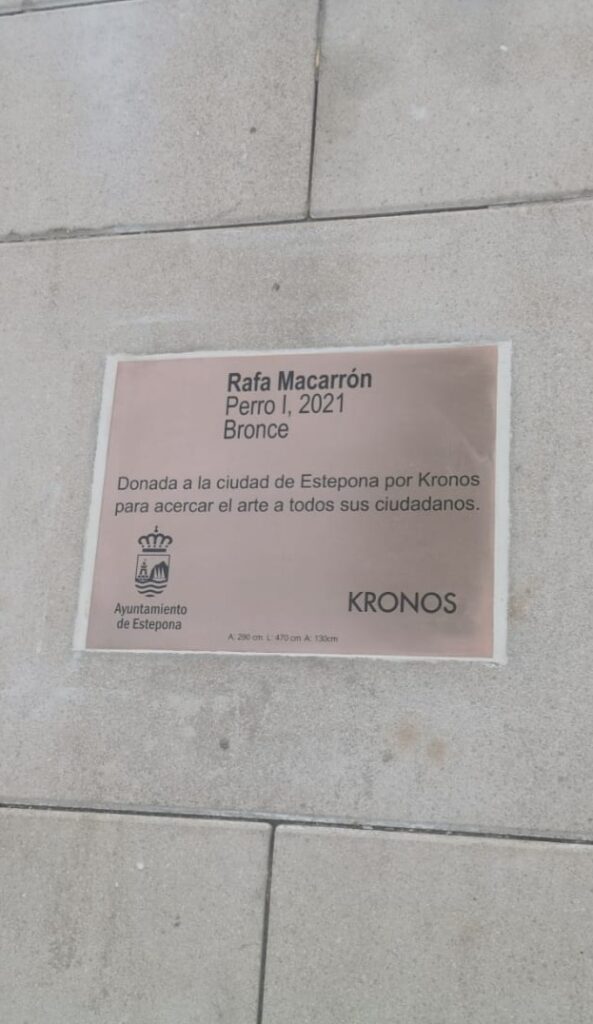 Placa de la escultura donada por Kronos a Estepona.