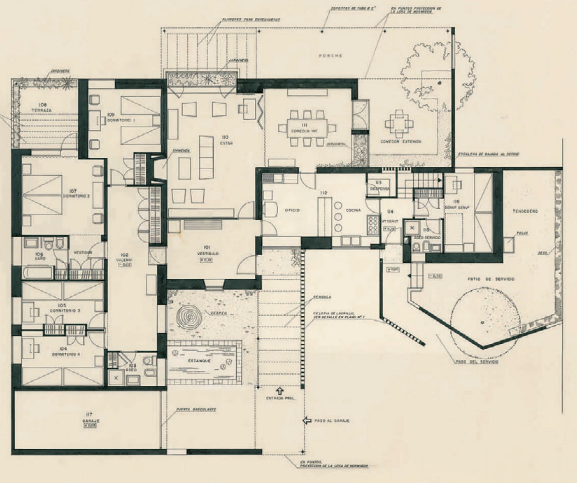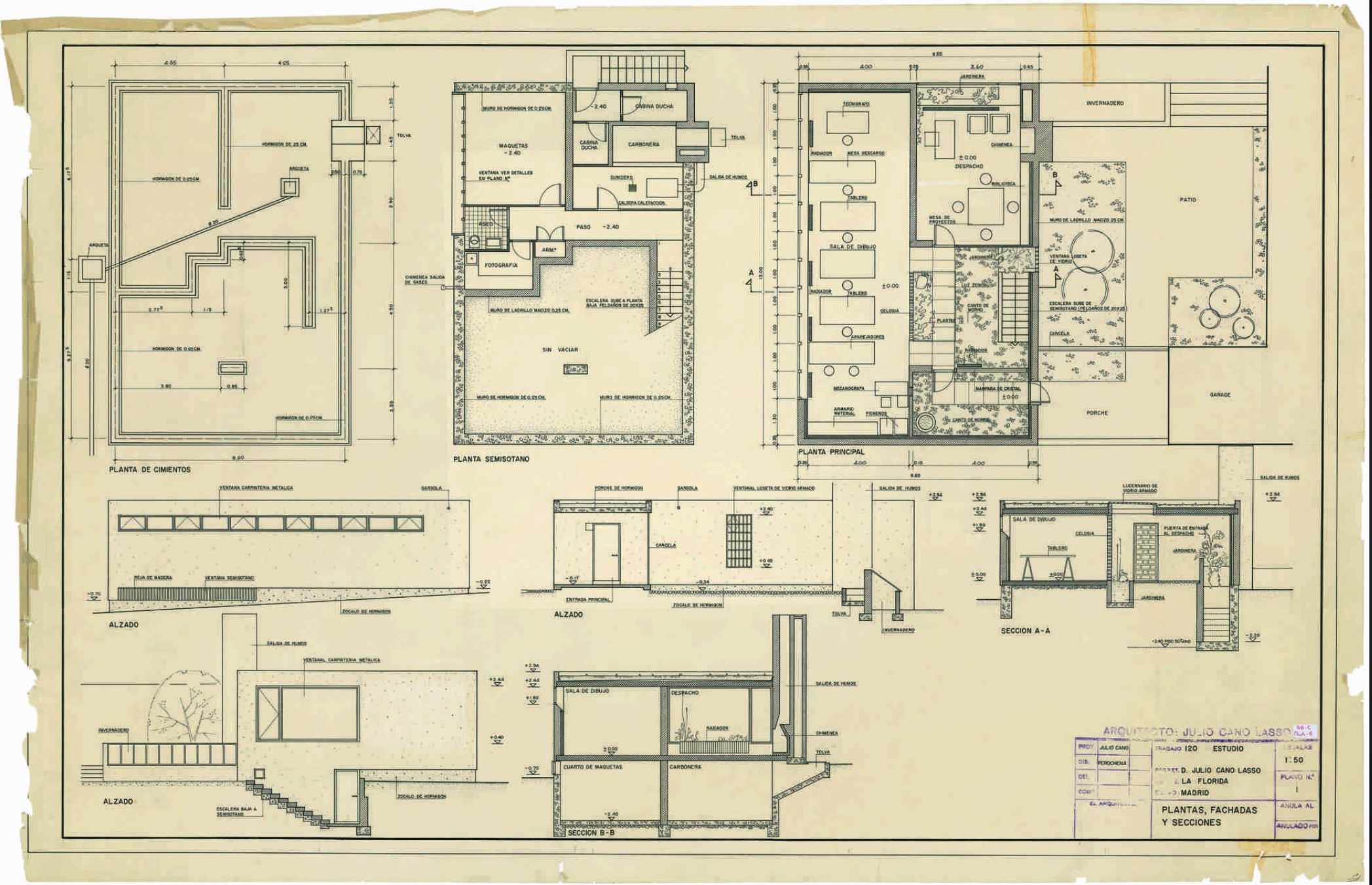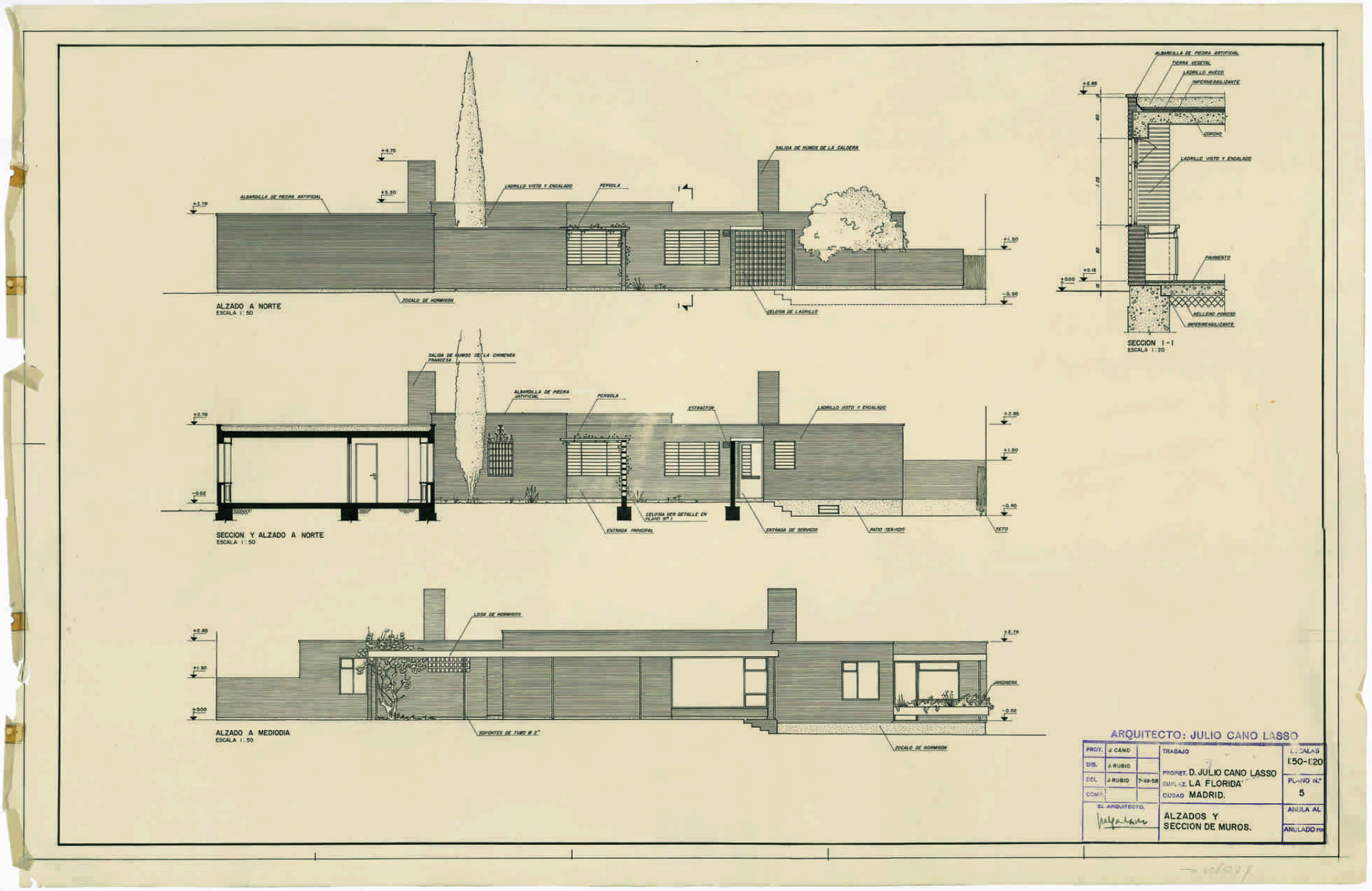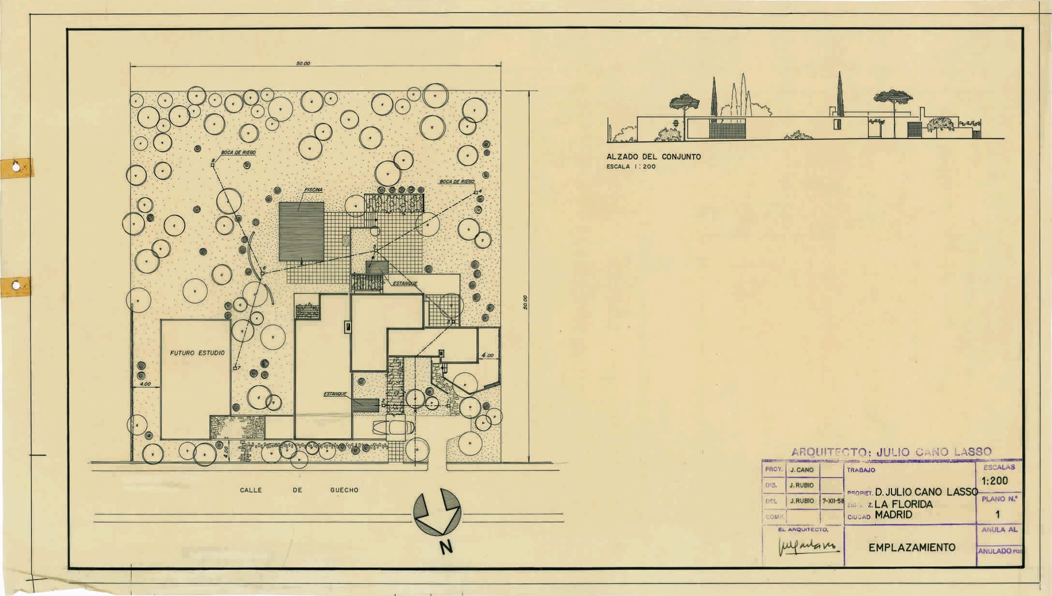 Su casa fue su primer proyecto de vivienda unifamiliar. Luego vendrían más, muchas de ellas en la misma urbanización de La Florida en Madrid. Pero antes de hablar de las que hizo para sus vecinos, vamos a viajar a 1956, a este pedazo de tierra parcelada entre la A-6 y el monte de El Pardo, junto a otros residenciales coetáneos como Casa Quemada o Ciudad Puerta de Hierro. Allí donde ahora luchan en ostentación villas de dudoso gusto, entonces se encontraba un paraje de gran riqueza natural, un remanso de paz en el que Cano Lasso, fiel a su filosofía compró una parcela de 2500 metros cuadrados para construir una casa en la que la vegetación y la relación entre el interior y el exterior marcaron el desarrollo del proyecto.