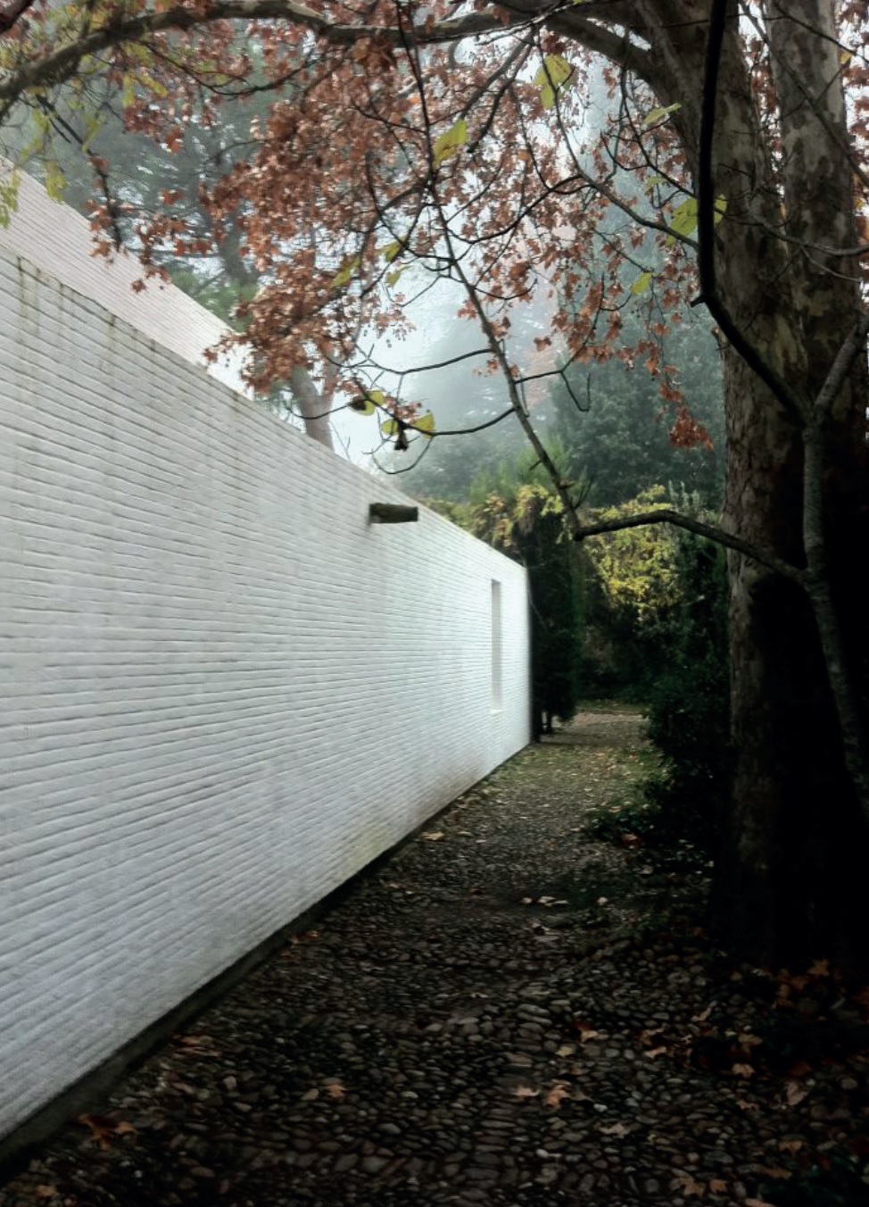 En este sentido, la casa se sitúa abrazando el espacio exterior habitable, por lo que, al contrario que las otras propiedades que la acompañan, la casa de Cano Lasso no necesita un gran muro que la separe de la calle. Al contrario, basta con un murete blanco de apenas un metro de altura, pues es la arquitectura, como un segundo muro, la que garantiza la privacidad y marca los límites entre el espacio habitado y el espacio de transición. Una solución que nos recuerda en cierta medida a la Casa Sert en Massachusetts y que, junto a las pérgolas y el abundante follaje asegura la intimidad de las estancias privadas.