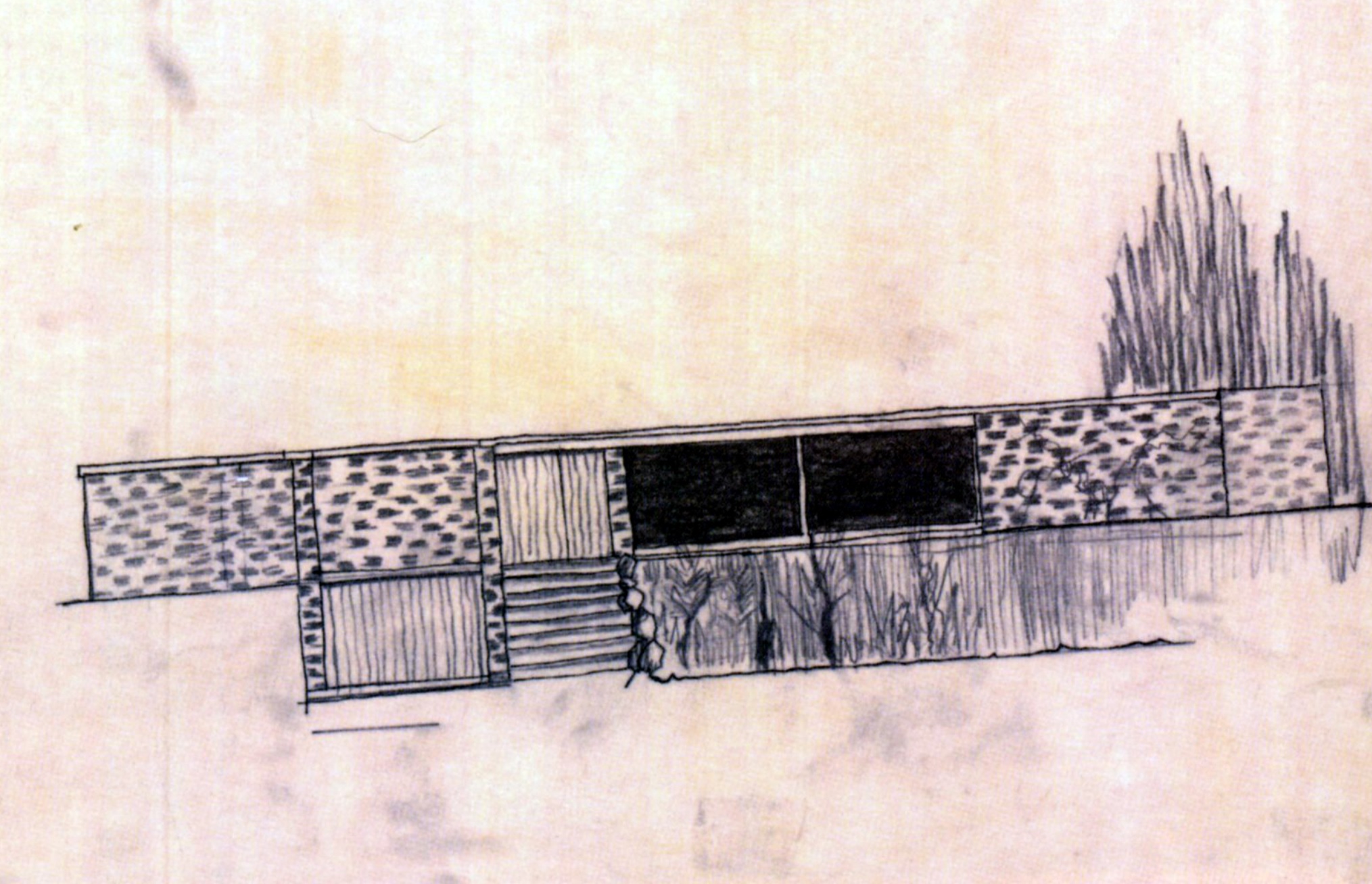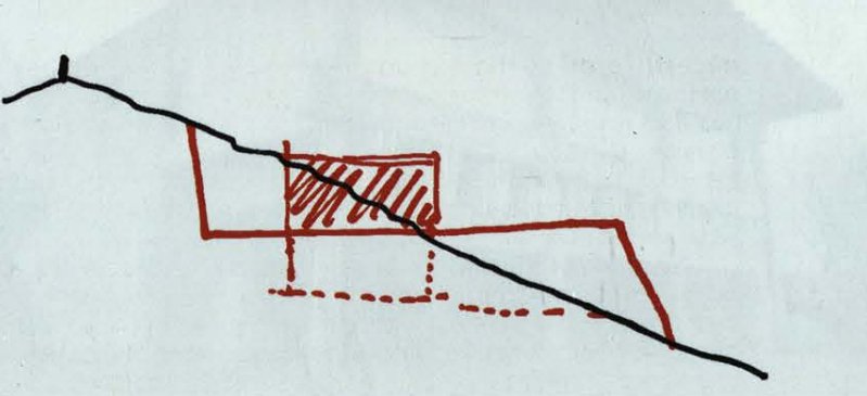 Corte en sección de la ladera y del desmonte necesario para construir la casa.