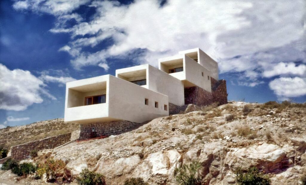 Empezamos con uno de nuestros arquitectos fetiche. Y es que Fisac siempre fue de una modernidad extrema, también en su casa de vacaciones. Más allá de las consideraciones en torno a su ubicación, sobre todo en cuanto al impacto paisajístico, es innegable que la casa de veraneo del genial arquitecto manchego es de un calidad escultórica espectacular.