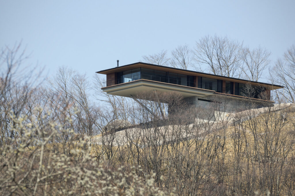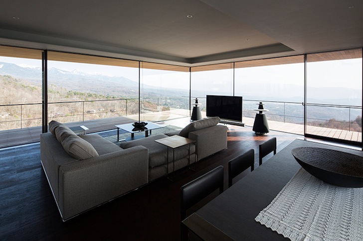 Kidosaki Architects Studio firma este espectacular proyecto suspendido sobre una ladera, completamente orientado a las impresionantes vistas de las montañas de Yatsugatake. Para diseñarlo, el papel del cliente fue esencial, ya que, antes de escoger el terreno donde construiría su casa, decidió mudarse a Tateshina y recorrer a pie los parajes más atractivos hasta encontrar el lugar idóneo.