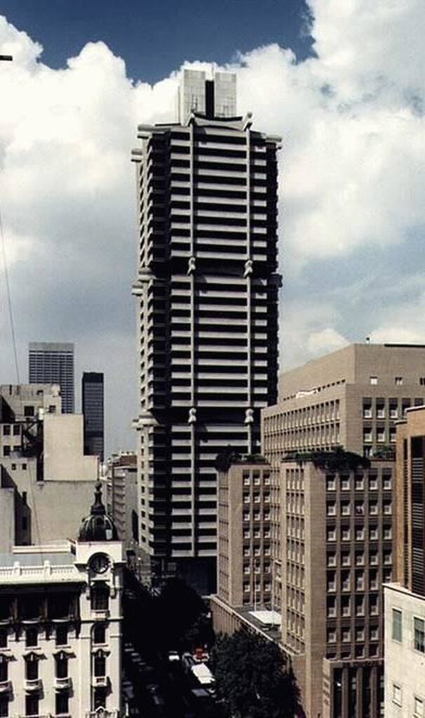 Como veréis, este tipo de arquitectura no siempre transmite una imagen liviana y etérea. Es más, como ya os comentamos en el artículo de las Torres de Colón, las construcciones suspendidas están pensadas para estructuras largas y bajas, no altas y estrechas. ¿La razón? Varias, como, por ejemplo, el empuje del viento sobre la fachada y su efecto en un edificio donde las plantas están colgadas; otra, el peso que soportan los tirantes y la cabeza a los que se anclan. Cuantos más pisos colgamos, más tensión soportan ambos. Un caso paradigmático -y una solución- de este problema, es el Standard Bank of South Africa de Johannesburgo, que reparte sus 27 plantas en tres bloques, cada uno pendiente de su propia cabeza.