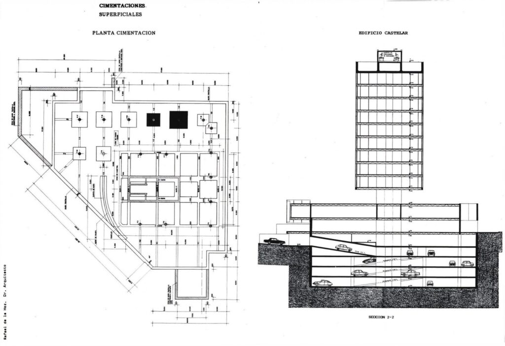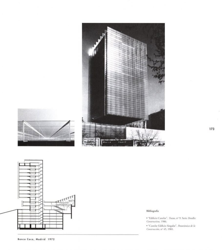 La historia del Castelar se remonta al año 1974, cuando el Banco Coca se lo encargó a De La-Hoz y a Gerardo Olivares para acoger la sede central de la entidad. Sin embargo, el Banco Coca fue absorbido por Banesto, que decidió confiar en los arquitectos y terminar el edificio para venderlo y cubrir parte del enorme sobreprecio que le había costado la operación. Para los morbosos, entre medias hay juicios y una condena a Ignacio Coca por falsedad documental que termina con su suicidio en 1986. Justo el año en que se finalizó el edificio. Desde entonces ha pasado por varias empresas y tras una fría acogida inicial, el tiempo lo ha consolidado como uno de los mejores edificios de la capital.