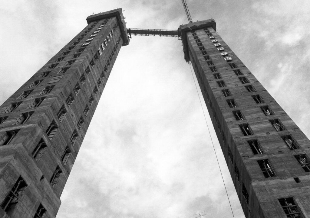 Como todo en las Torres de Colón, nada era lo que luego ha sido. Tampoco la estructura prevista. Con las obras empezadas, quedó claro que era imposible dar cabida al número de plazas de aparcamiento exigidas en la normativa municipal. Con poco más de 1700 metros cuadrados y teniendo que acoger dos torres de 20 plantas, el espacio en los cimientos era tan insuficiente hizo falta presentar un nuevo proyecto en 1969. ¿La solución? Dos núcleos de hormigón como único sustento en lugar del tradicional entramado de pilares. Así se conseguía liberar al máximo el espacio bajo rasante sin perjudicar la superficie útil de las torres, que, por aquel entonces, iban a tener un uso residencial.