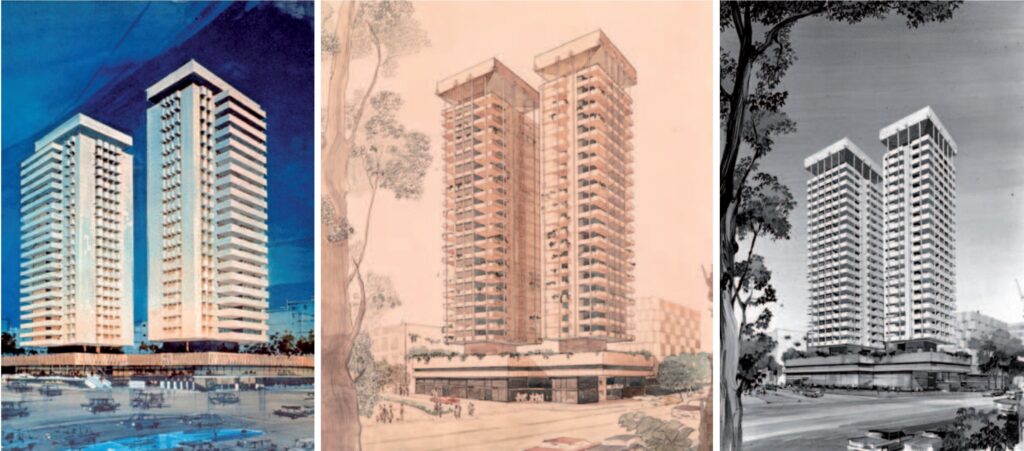 Para solucionarlo, Lamela decidió desdoblar esas 40 plantas en dos torres y, cuando le dijeron que dos torres no eran una unidad arquitectónica, argumentó que no eran dos torres, sino un par de torres: lo que le valió la aprobación del proyecto en 1968. Un proyecto que partía de una mínima ocupación del suelo y una maximización del espacio en altura. Todo para dar esa superficie a los peatones y facilitar el acceso a los niveles inferiores de los edificios.