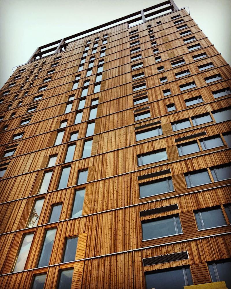 Pero ¿y fuera? Si miramos fuera de nuestras fronteras, enseguida encontraremos edificios espectaculares, como el rascacielos Mjøstårnet, con 85 metros de altura y 18 plantas, diseñado por Voll Arkitekter en Noruega. Y, en este mismo país, unos años antes The Tree, con 51 metros, ya había sentado las bases para lo que está consolidándose como la técnica constructiva mayoritaria en los países nórdicos. Algo que también comienza a tomar forma al otro lado del atlántico, donde podemos ver ambiciosos proyectos como el conocido Tall Wood Buildind, una residencia de estudiantes de 53 metros de altura en Canadá. Eso sí, cualquier cosa parece pequeña al lado de los 350 metros de altura de la torre que la empresa nipona Sumimoto Forestry planea construir en Tokio en 2041.