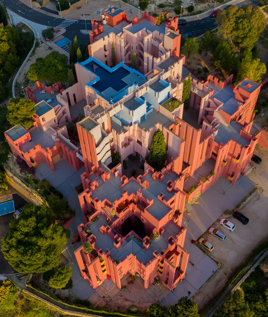 Pero, aunque pudiera parecerlo, La Muralla Roja es mucho más que su llamativa estética. De hecho, merece una especial mención su planta, un laberinto entretejido por edificios con planta de cruz griega; o sus espacios comunes, que mezclan lo privado y lo público, tal y como el arquitecto había ensayado en el Walden 7. También esas terrazas, que son interiores y exteriores a la vez y que enmarcan el paisaje. Y, desde luego, la piscina de la azotea, que abandona la cruz griega y se vuelve extrañamente cristiana sobre un conjunto erigido de acuerdo a siglos de arquitectura hispanomusulmana. O lo que es lo mismo, una metáfora impecable de nuestro Mediterráneo.