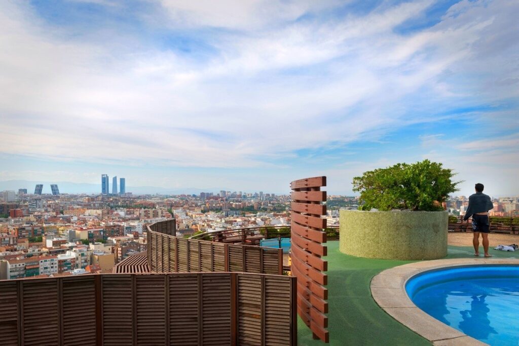 Espectaculares vistas de Madrid desde la piscina de Torres Blancas.