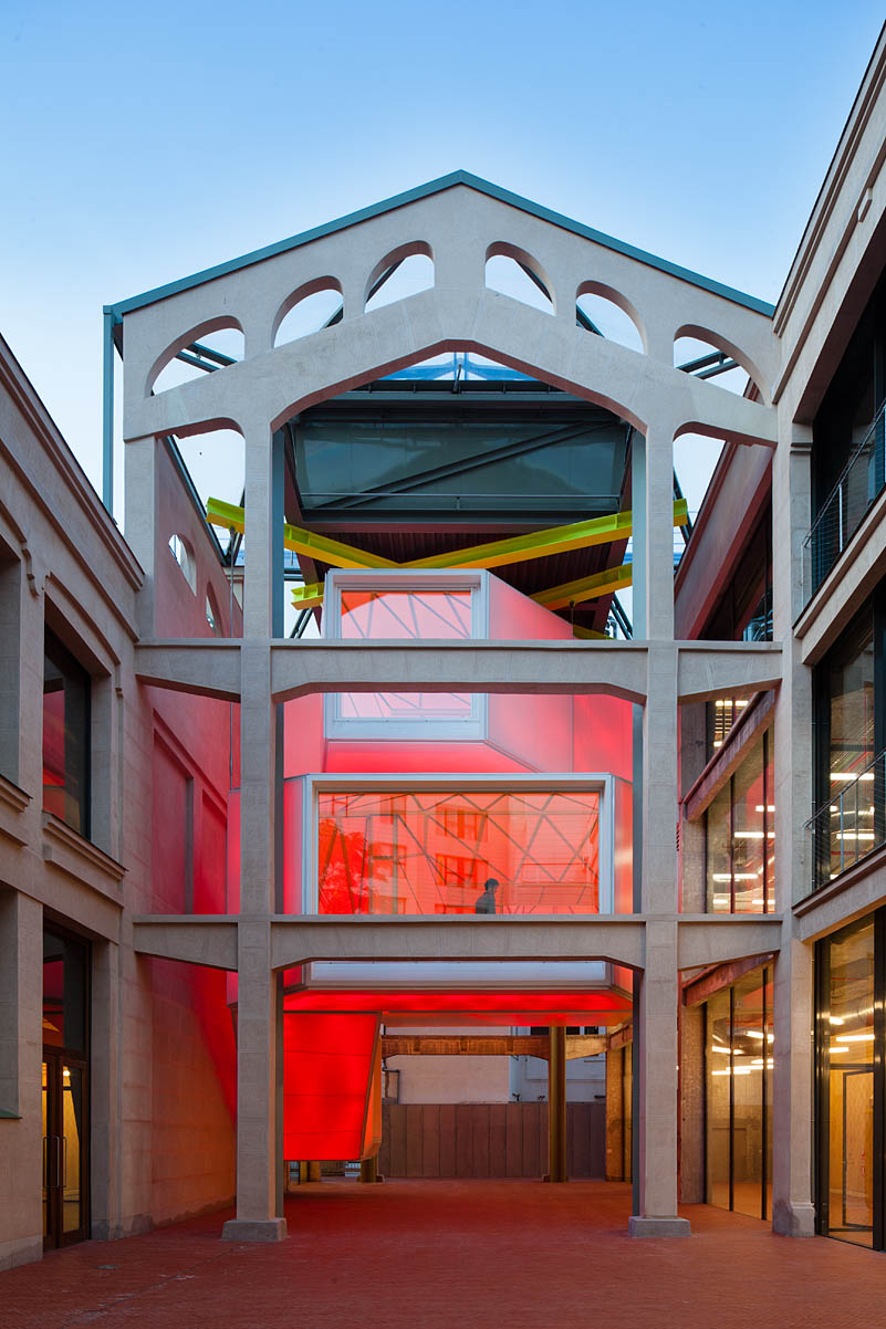 El estudio Langarita Navarro Arquitectos planteó el proyecto como La Serrería vs. La Cosa, en donde La Serrería es la estructura conservada del edificio original; y La Cosa es el conjunto de espacios nuevos que se insertan en La Serrería sin modificar sus formas, pero ocupando sus espacios. El resultado es un juego de conceptos que casi parece una intervención o una performance temporal y que, sin embargo, consigue dos objetivos fundamentales: por un lado, actualizar el edificio y adaptarlo a su nuevo uso y, por otro, respetar y potenciar el aspecto más importante del edificio primigenio, su avanzada estructura de hormigón visto.