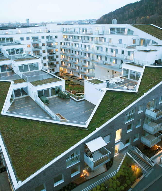 Sin embargo, no es necesario visitar un punto concreto de la ciudad. Basta con echar un vistazo a los nuevos proyectos que han crecido en todo el casco urbano, residenciales como el Sørenga Block 6, de MAD Arkitekter, en los que el componente vegetal es un elemento constructivo más.