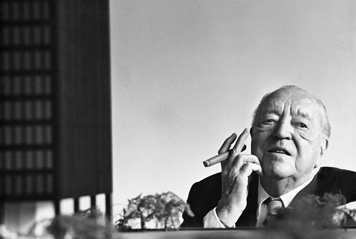 En 1957, la Seagram Company Limited iba a cumplir un siglo de vida y su presidente, Samuel Bronfman, quería celebrarlo levantando un gran edificio en Nueva York. La nueva sede de la compañía debía de ser memorable, un símbolo indisociable de la imagen de su empresa. Sofisticado, elegante, imponente. Un hito de la arquitectura de la capital del mundo. Y con esas premisas contactaron en 1954 con William Pereira, cuya carrera comenzaba a despegar. El diseñador de la Transamerica Pyramid y la Biblioteca Geisel se puso manos a la obra y enseguida tuvo una enorme maqueta del futuro edificio Seagram. Orgulloso, Samuel Bronfman se hizo retratar junto a aquel rascacielos a escala y después le envió la fotografía a su hija Phyllis, que estudiaba arte en París. En este punto, comienza nuestro relato.