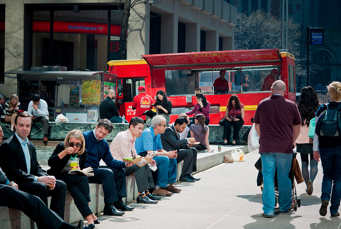 Mies apreciaba la participación de Phyllis. A Johnson le habían encargado ocuparse del diseño del interior del edificio, pero aquella joven incansable estaba en ambos lados. Y lo estuvo hasta el final. Fue ella la que convenció a su padre y a la comisión de que debían renunciar a un tercio del solar para crear una plaza pública. Y debían hacerlo porque ello ofrecería una perspectiva inédita en cualquier otro edificio de Park Avenue. Haría posible apreciar su magnitud y su elegancia. Le daría luz y vida al acceso y lo haría formar parte de la vida de la ciudad. Algo que, nada más terminar el edificio, se demostró un éxito absoluto.