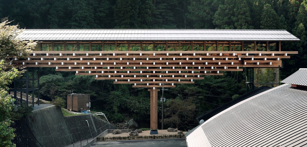 El impresionante puente de madera de Kengo Kuma sirve para unir dos edificios separados por una carretera, pero no solo los une. También es un espacio de exposición, de taller y de alojamiento para artistas.
