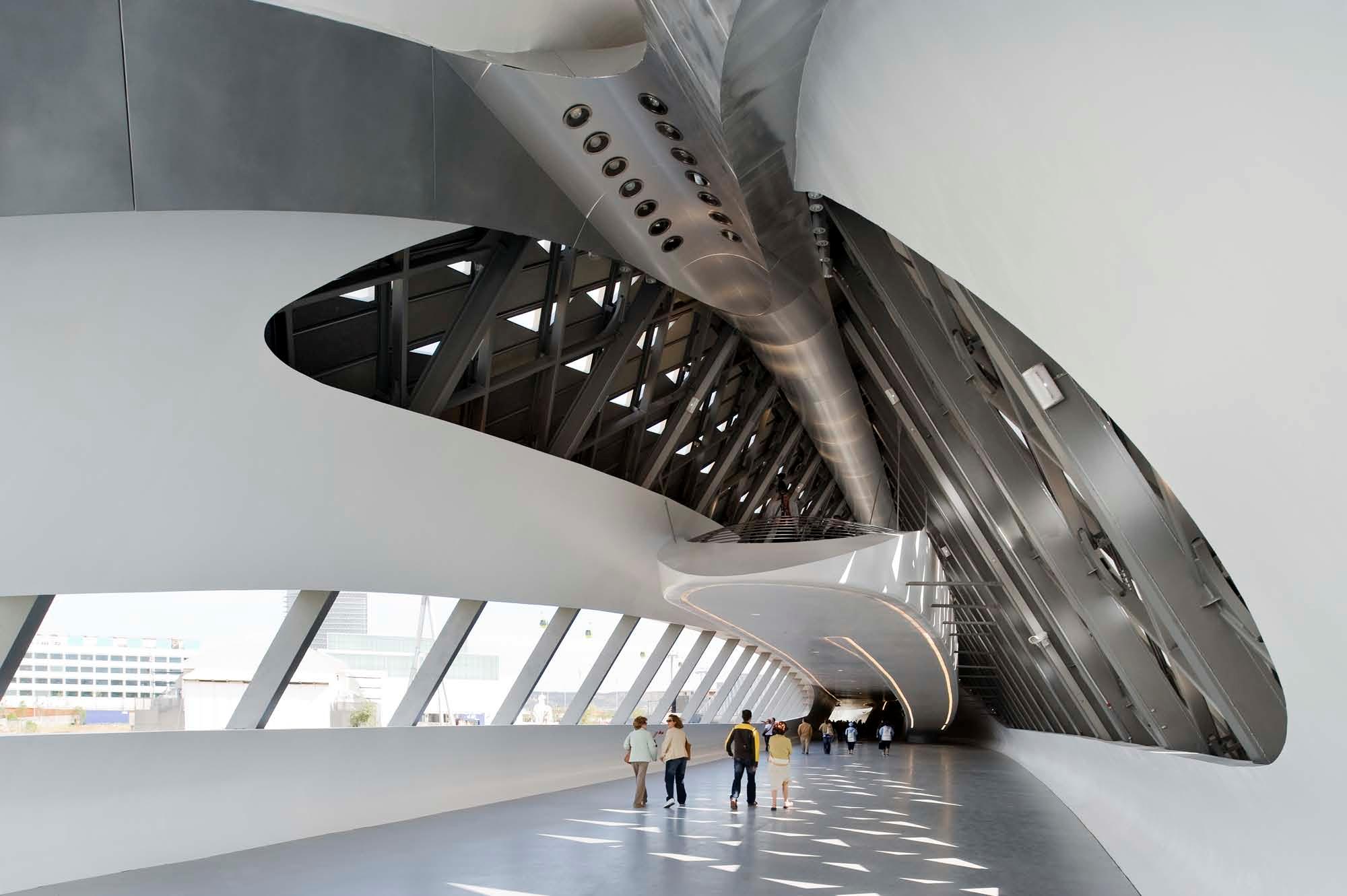 La puerta de entrada a la Expo de Zaragoza de 2008 tiene el sello inconfundible de la gran Zaha Hadid. Un diseño que nace del estudio de la sección de un diamante y sus propiedades estructurales para distribuir la fuerza a través de la superficie.