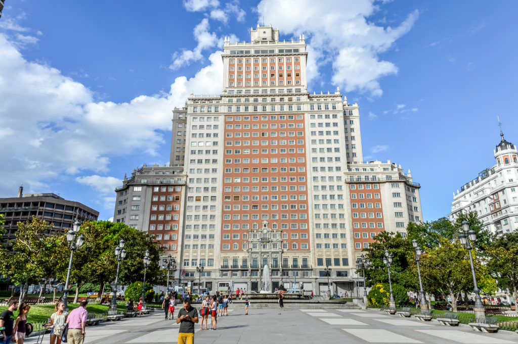 Diseñado por el arquitecto Ignacio de Cárdenas y finalizado en 1929, este gran edificio de acero, granito y piedra caliza fue el primer rascacielos de Europa hasta 1931. Durante la Guerra Civil fue uno de los principales objetivos de las tropas franquistas, ya que su azotea servía de punto de observación y su tecnología era clave para la comunicación del gobierno republicano. A pesar de que sus 88 metros no son una medida muy espectacular hoy en día, su ubicación en una de las cotas más altas de Madrid consigue que siga destacando en el perfil de la capital.