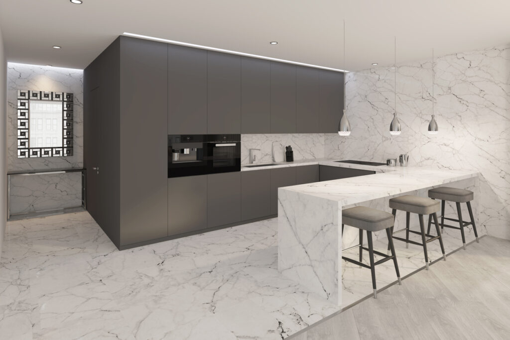 Cocina con suelo de mármol.