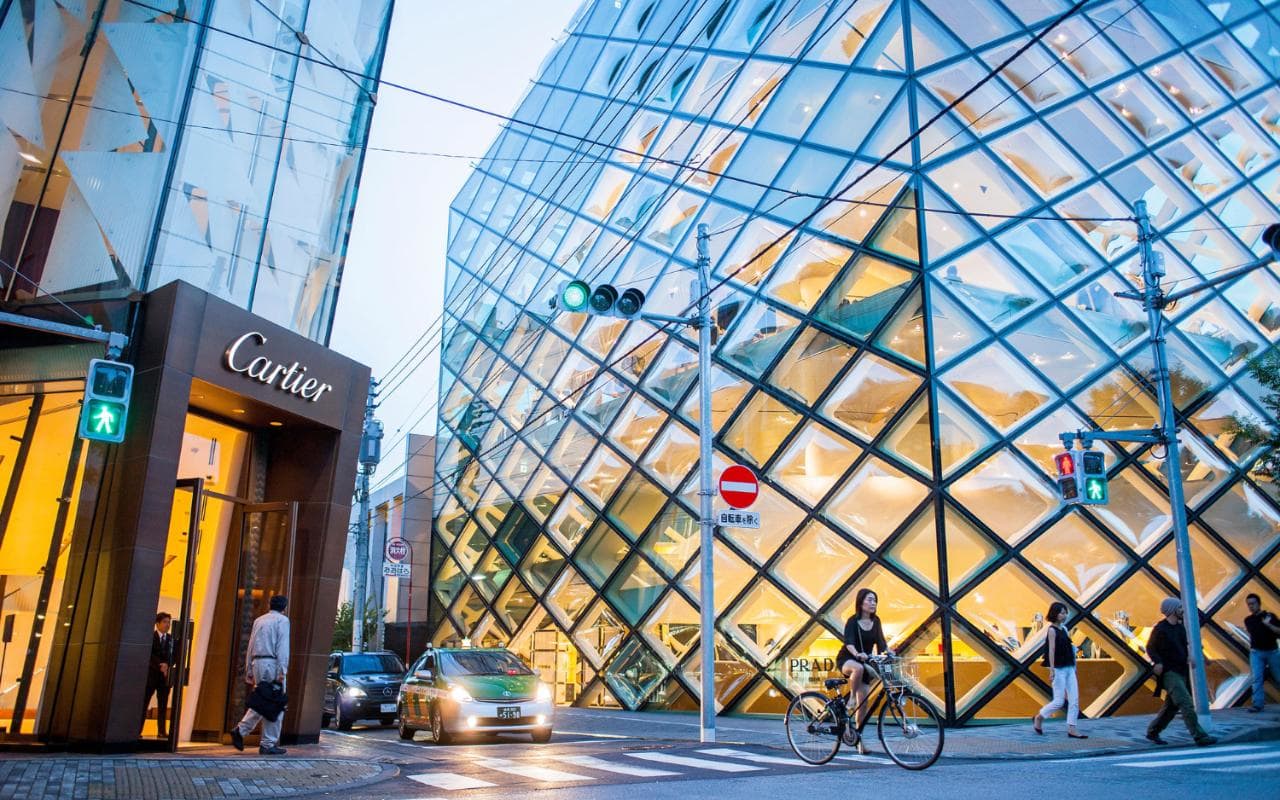 Si Shibuya es el distrito tecnológico, las zonas de Ginza, Aoyama y Omote-Sando son el paraíso del lujo. Algo que tampoco tendría demasiado interés, si no fuera por la estrategia de ciertas empresas para hacerse notar en medio de un ambiente tan exclusivo: competir arquitectónicamente por tener la mejor tienda. Un objetivo cuya dificultad exige la participación de algunos de los mejores arquitectos del mundo, como Herzog & De Meuron y Renzo Piano; y también japoneses, como Kumiko Inui, o Aoki Jun, entre otros. Una buena muestra de cómo ambos mundos se encuentran, incluso en lo comercial, a través de la arquitectura.