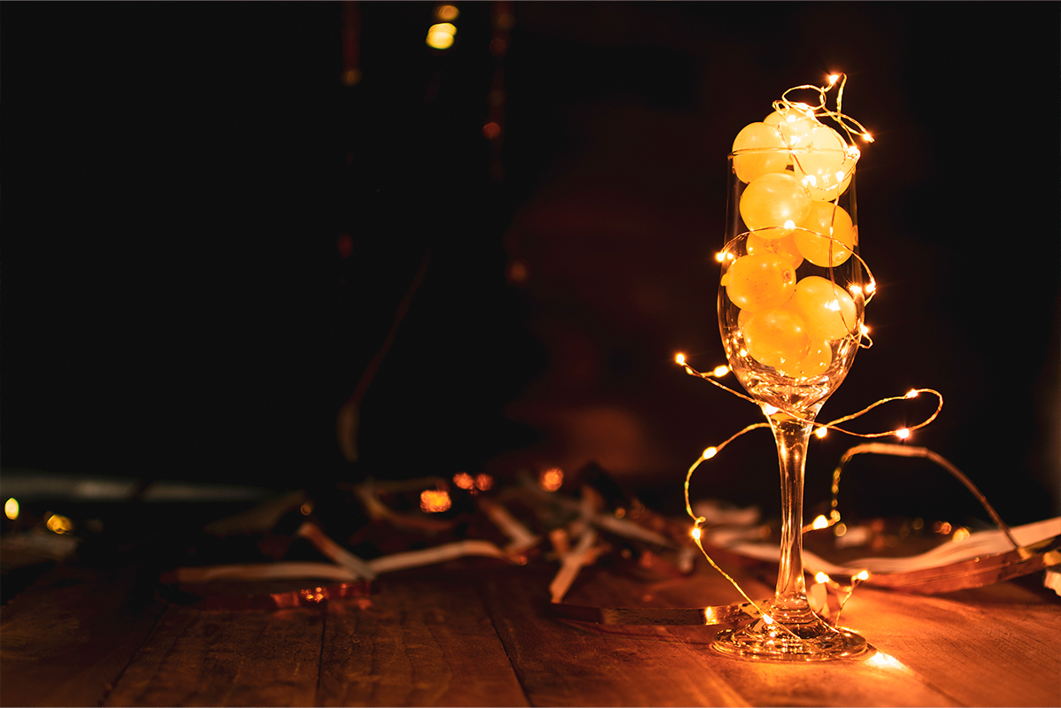 El brindis de medianoche es el momento culminante de la velada. Prepárate con una selección de bebidas espumosas, desde champán o cava hasta opciones sin alcohol para todos los invitados. ¿Qué tal si preparas un cóctel especial de la casa para la ocasión? Distribuye copas elegantes un poco antes de las 12 campanadas y prepárate para dar la bienvenida al nuevo año con un brindis significativo. ¡Y no te olvides de las uvas! Crea pequeños paquetitos para cada invitado y colócalas en una mesa auxiliar para que cada uno pase por ahí y recoja sus uvas y su copa para disfrutar del momento estelar.
